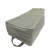 The Rooftop Storage Gear Bag by The Bush Company is great for storing items on your roof or roof rack that you want to protect from the elements. The Rooftop Storage Gear Bag has been designed to fit three of The Bush Company'ss Pioneer Boxes perfectly| but you can store pretty much anything in it. The dimensions of the Gear Bag are 1.2m long| 51cm wide| and 26cm high| with a capacity of 160L. Built-in strapping points for tie-down ratchet straps which are not included| allow you to anchor your load securely and safely with the straps running either lengthways or sideways across the bag. The canvas is our heavy-duty 460gm ripstop canvas and there is a full PVC floor providing extra protection. The zip is a high-quality YKK zipper and the large overlapping flap is secured with a 25mm wide strip of heavy-duty Velcro. As the bag is the canvas we cannot guarantee that it is 100% waterproof due to stitching etc. | but the bag is about as water-resistant as you can get. The ratchet straps are not included with the bag.