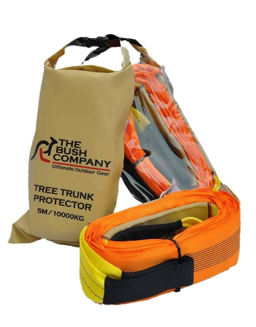The Bush Company Tree Trunk Protector| sometime referred to as a rigging strap| is 5m in length| has a rated breaking strain of 10|000Kg and is made of nylon webbing| specifically designed to be non-elastic to handle the high capacity of winch pulling. . This strap is designed to rig your winch line to a solid object| such as| a tree. You'sll need a D-shackle or clevis attached to the looped ends of the strap together and attach your winch hook. As the name suggests| the Tree Trunk Protector helps protect a tree you'sd be using as an anchor from damage by the winch rope. Using wire rope directly on a tree trunk will damage the tree and possibly kill it. However| tree trunk protectors aren'st just about tree preservation| they'sre about safety. You NEVER| ever want to wrap a winch line around any anchor and hook the line back onto itself. This is a dangerous practice that can lead to rope failure| and that is obviously a very bad thing. Specifications Width ‚ú 90mm Length ‚ú 5m Min breaking strength -10|000kg Reinforced End Loops ‚ú Yes Grip & Seam Protection Pad ‚ú Yes In Sealed Dry Bag ‚ú Yes Fully Sleeved webbing ‚ú Yes