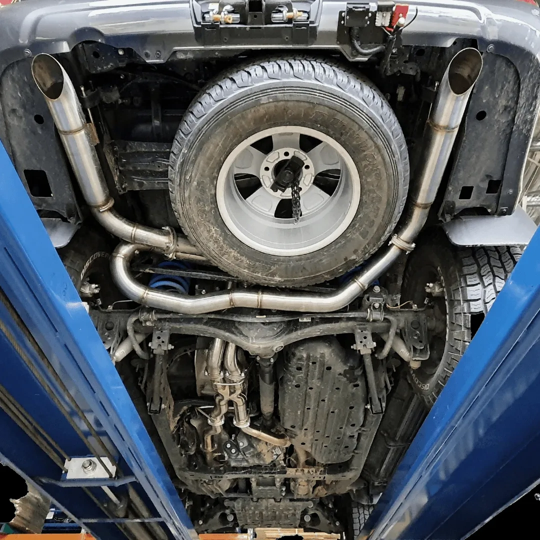torqit exhaust systems are designed for maximum power and torque| reducing exhaust gas temperatures (EGT) so that your vehicle can breathe better and live longer. One of the thickest and most durable mandrel bent systems in Australia| the 304 grade stainless steel ensures supreme strength in all terrains. The exhaust bolts onto the back of the turbo and follows the path of the original exhaust. This system has blue titanium dump pipes to help with heat dispersion and lower EGT’s.