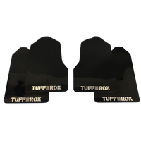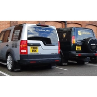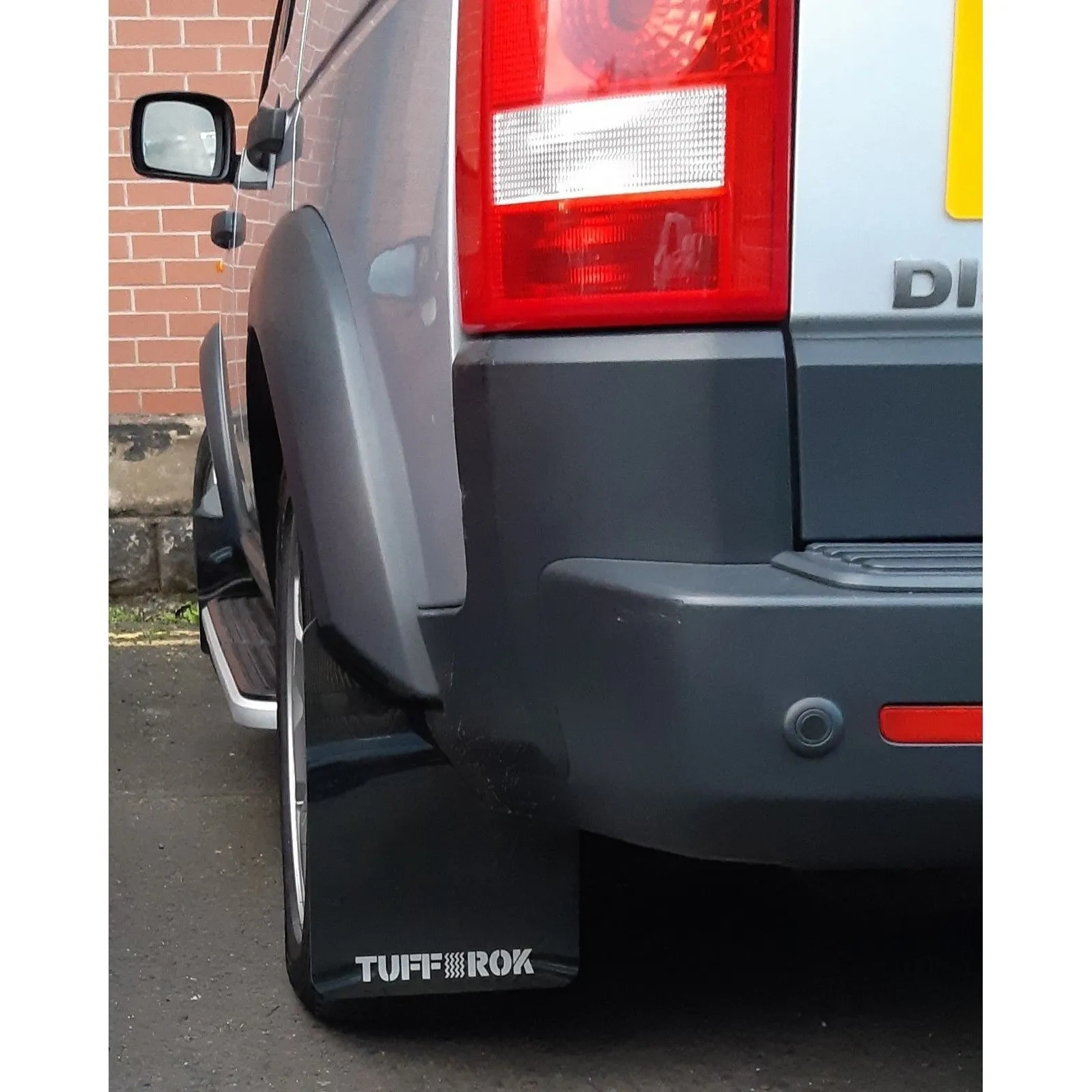 Upgrade the hard plastic mudflaps on your Discovery 3| to these ultra flexible| 4mm PVC mudflaps from Tuff Rok. This is a full set| to replace the front and rear.